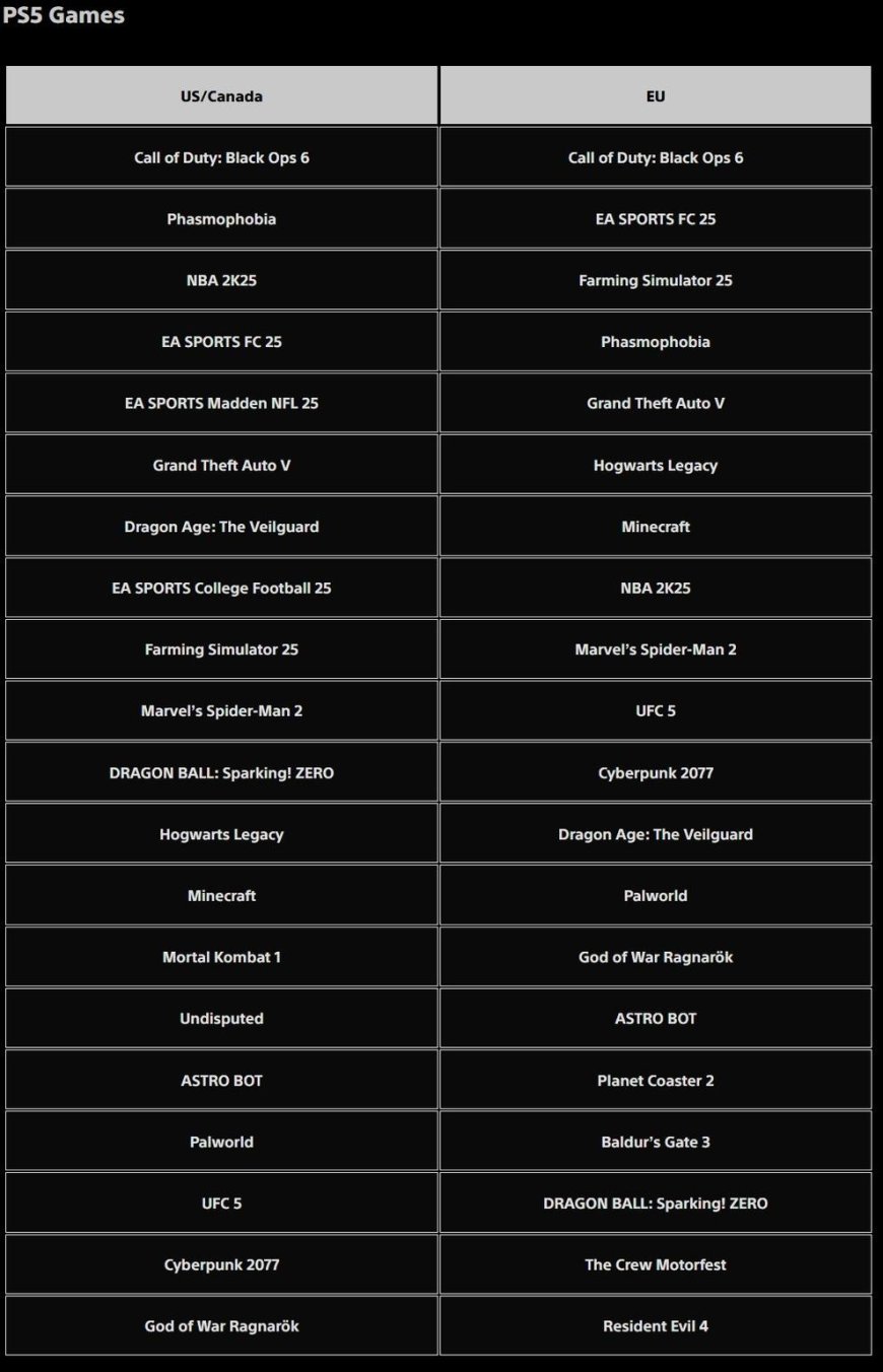 Топ самых популярных игр ноября на PS5 и PS4: Sony представила свежую статистику